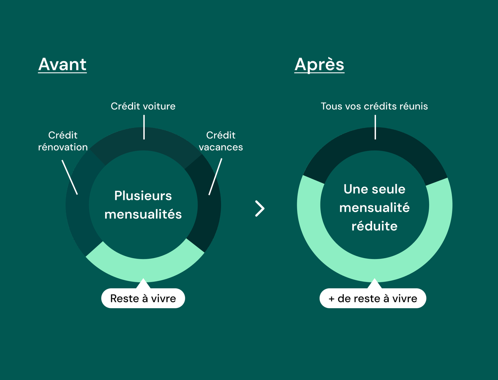 Remboursement des anciens crédits et démarrage des nouvelles mensualités.